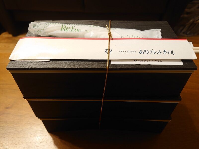山形グランドホテルさんで懇親会のはずが、直前になってお弁当持ち帰りに。