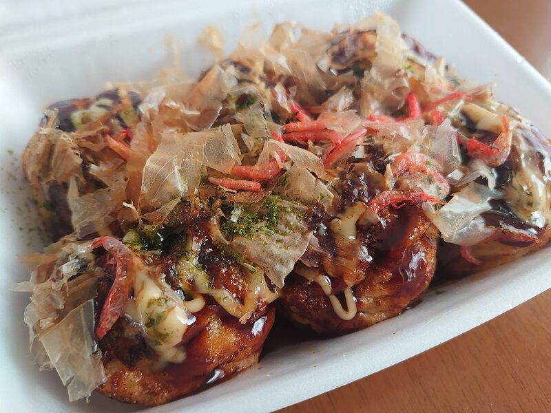 家に帰ってから軽くレンジで温めて食べてみたんだけど、エビの風味と生地のトロっとした食感がなかなか良かったよ。エビは中にむきエビが1匹入ってるんだけど、たこ焼きとは全く違うぷりっとした食感が新鮮だったね♪