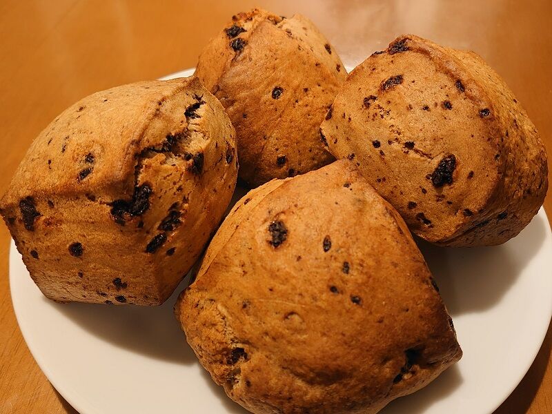 結果、出店場所にたどり着いたときにはすでに売り切れ間近。マフィンは残り1個だけ、スコーンも2種類しか残ってなくて、家族の人数分、4つ買えるのはこのチョコレートのスコーンしか残ってなかったんだよね(^^;