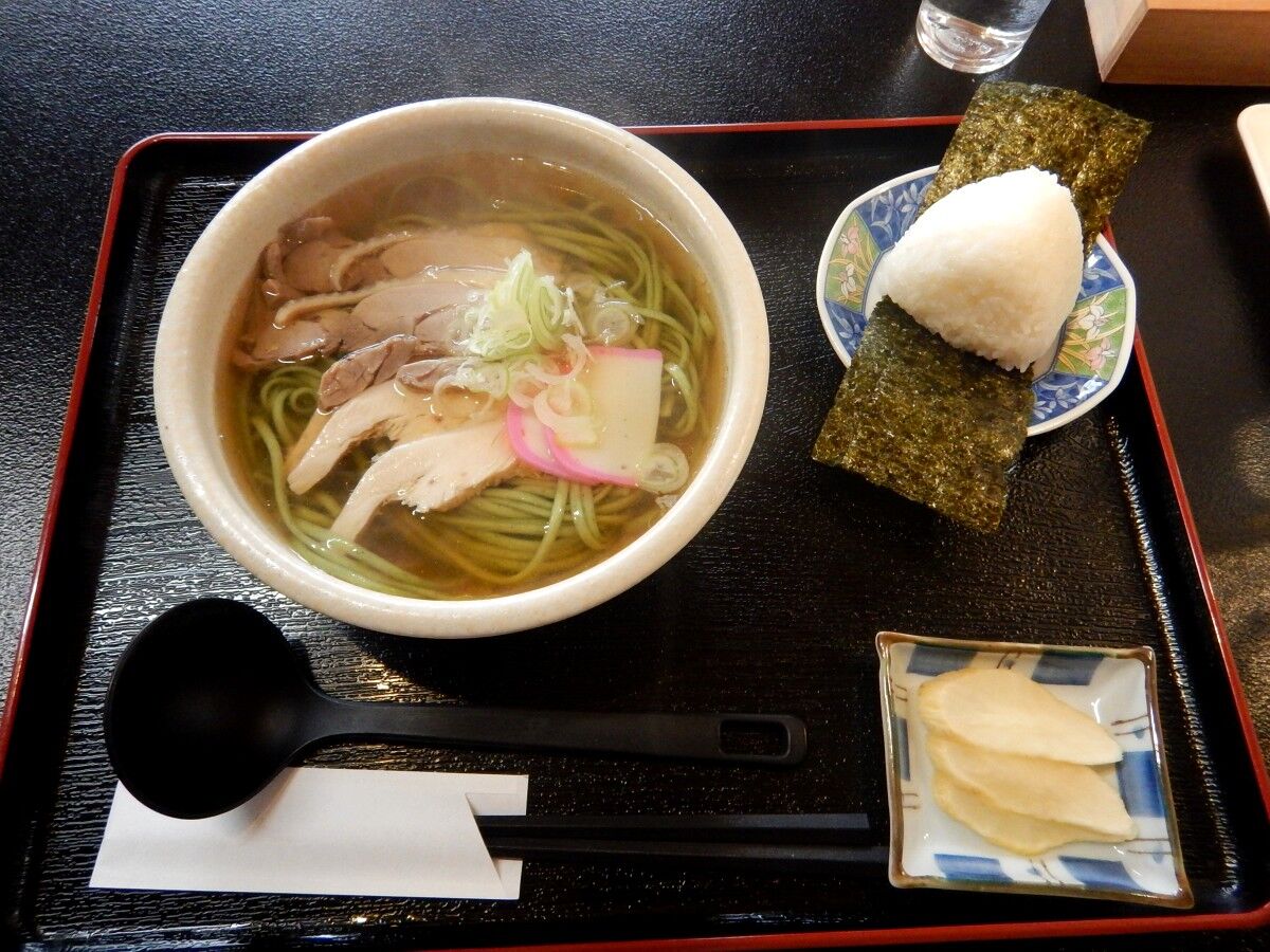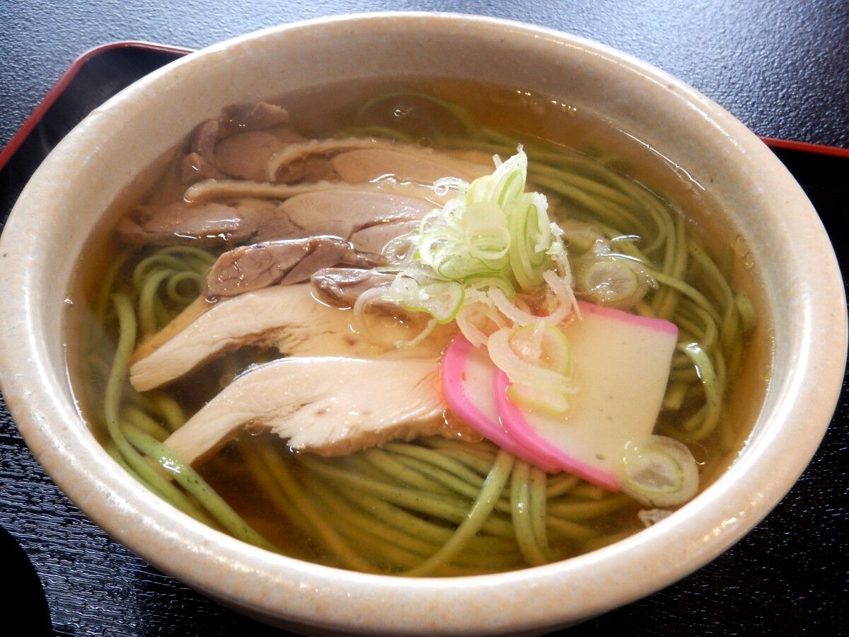 緑色の真麻うどんは細めのストレートで、特に変わった香りや味はありません。