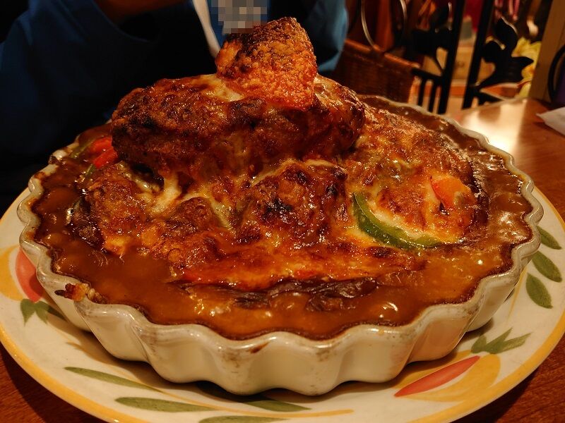 僕が頼んだのは、チキンの唐辛子煮込みグラタン、1260円。