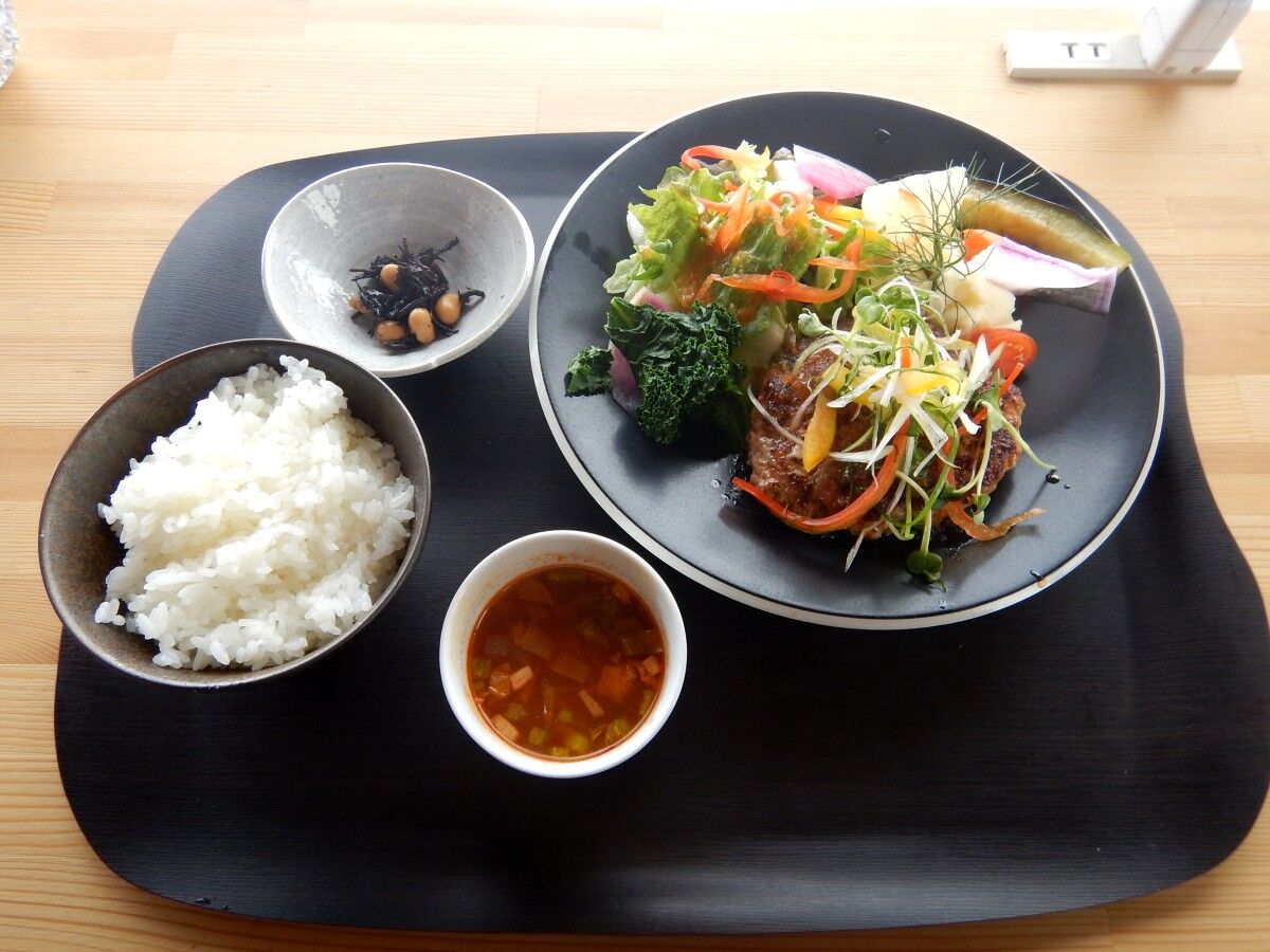 ふっくらと焼き上げられたハンバーグは肉厚で脂ものっています。