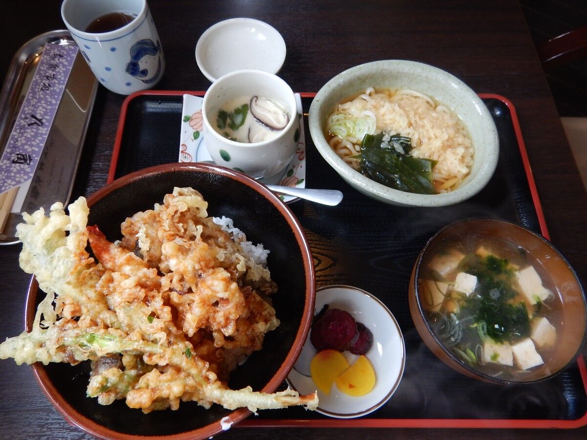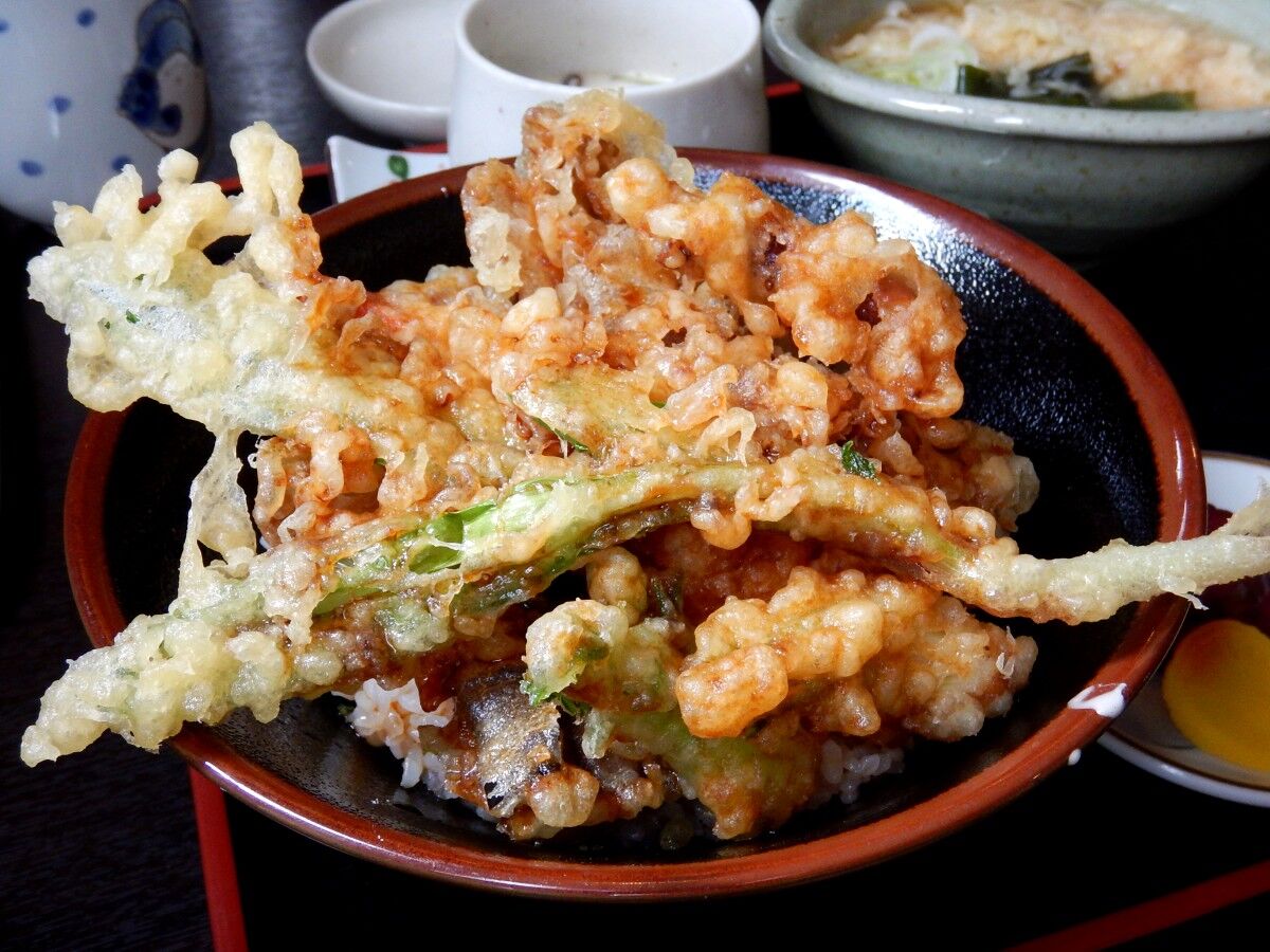 ナスやマイタケにカボチャ、サツマイモ等々、海鮮はホタテにホタルイカ、そして海老と盛りだくさん。