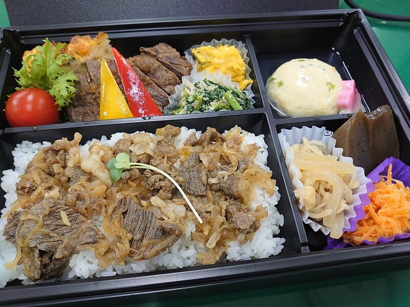 その名も「手作りおかずと黒毛和牛ステーキ&牛時雨のダブルミート弁当」ですψ(`∇´)ψ