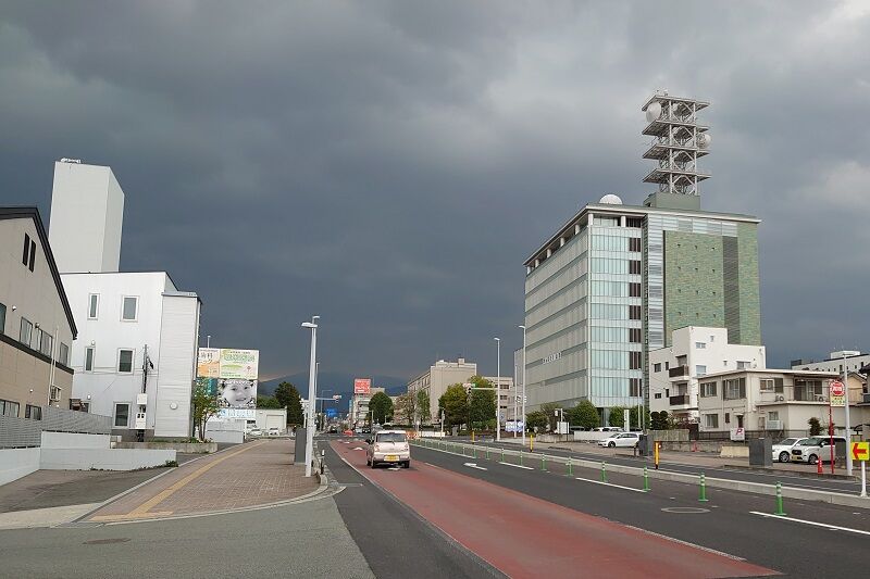 凄まじい向かい風と闘いながら何とかここまで帰って来たとき、進行方向の空を見て嫌~な予感。