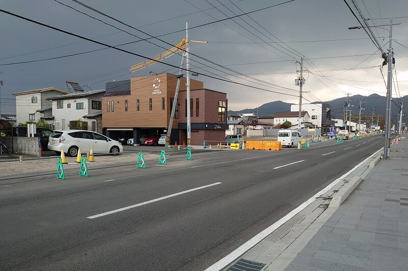 そして背後には六日町あいあいさんのある交差点。この通り、今まさに拡幅工事をしてるんだね。
