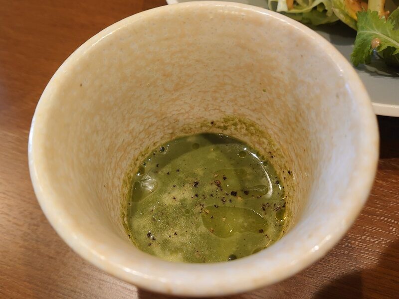 熱いとまではいかないぐらいの適温でサーブされた、ほうれん草のスープ。