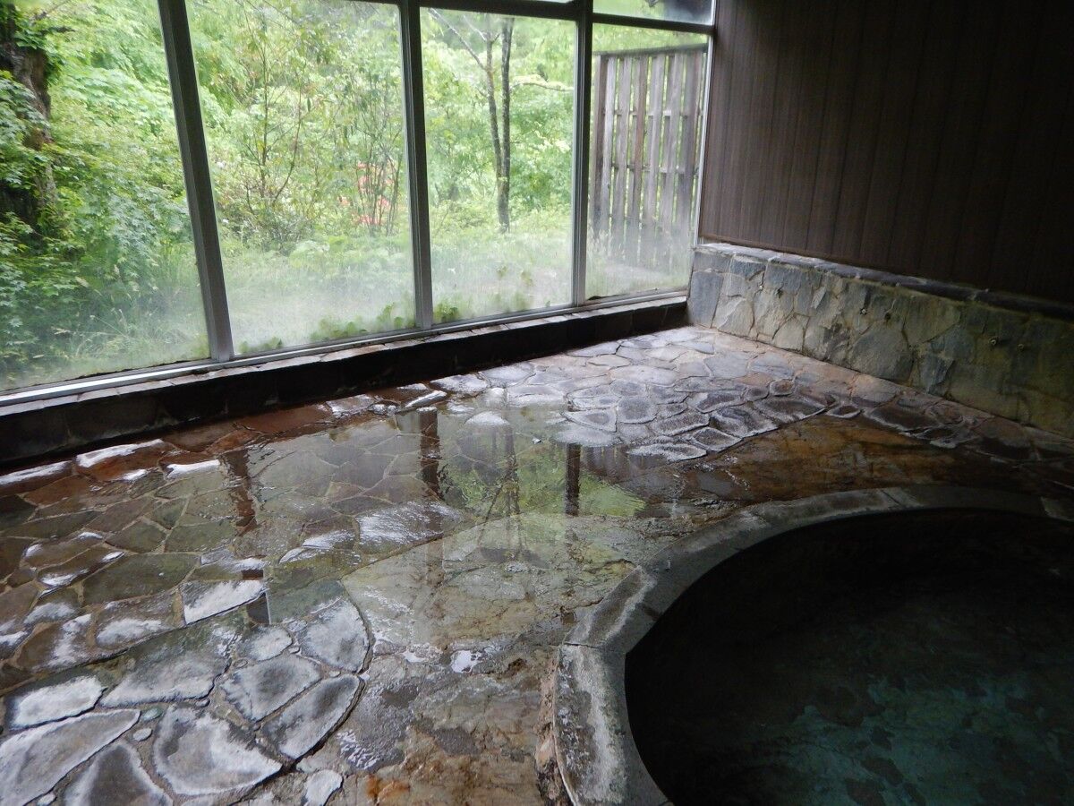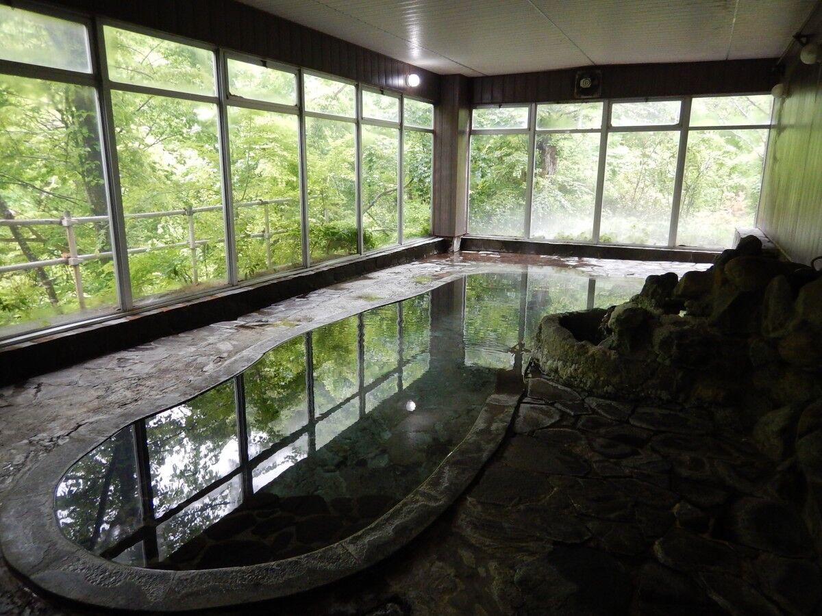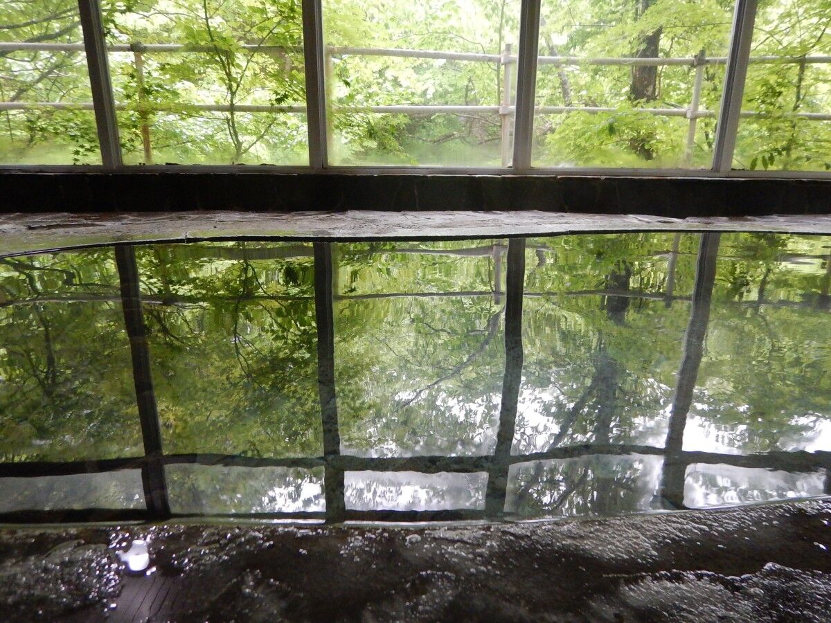 湯面に映る木々を眺めていると森林浴をしているよう。
