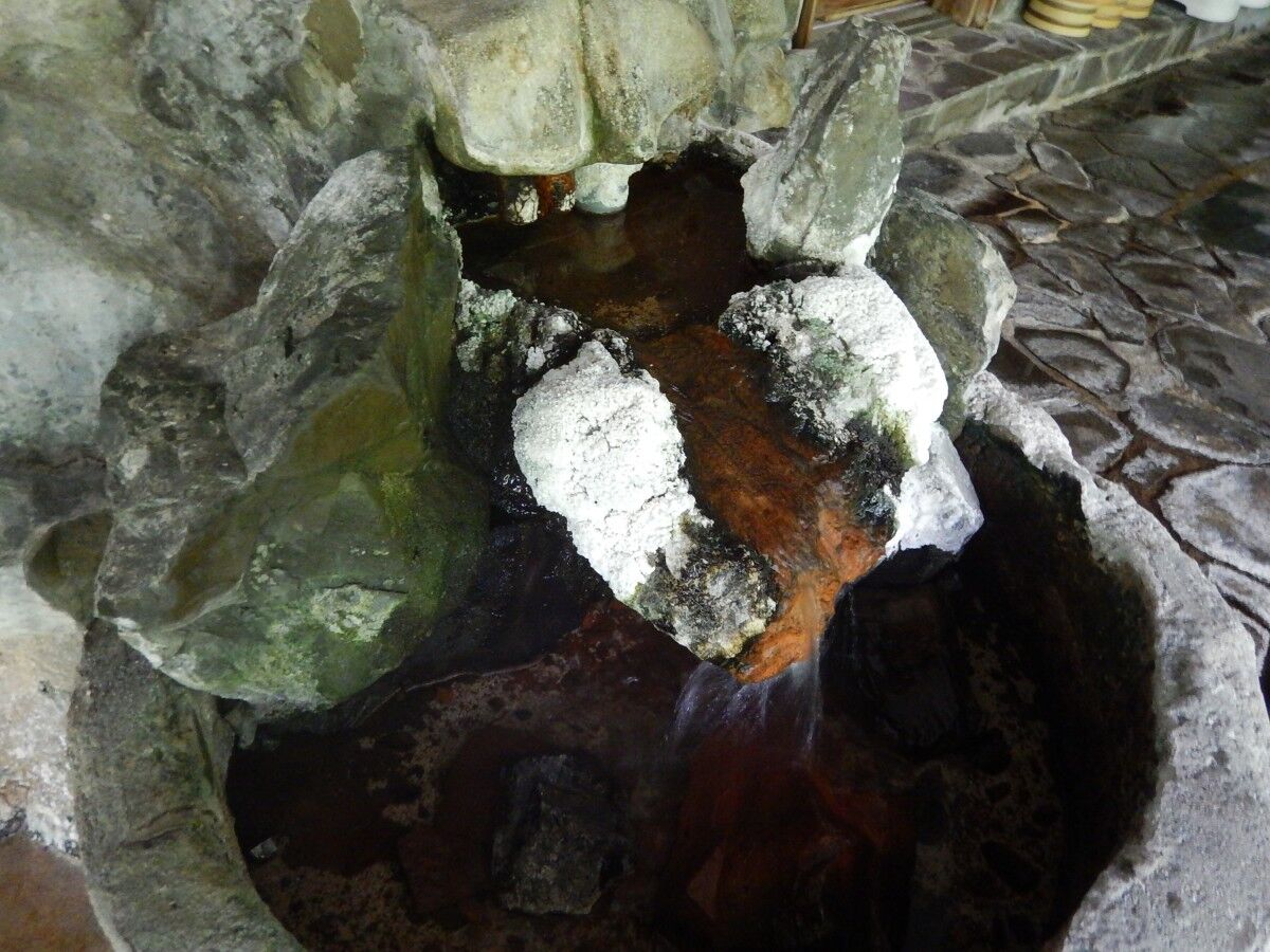 比較的成分は薄めですが、湯口に出来た析出物は立派です。