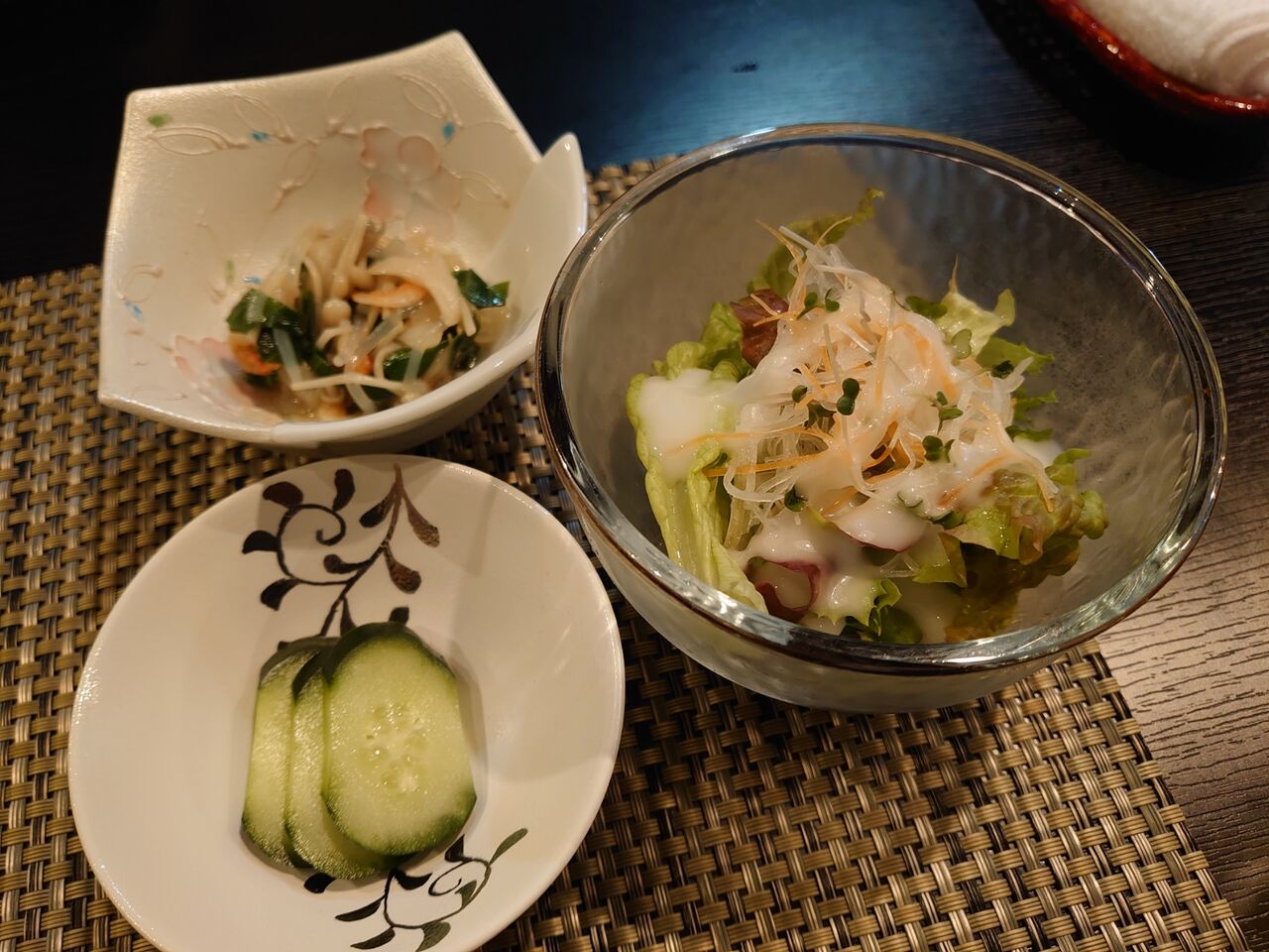 ポイントは、ランチョンマットと小鉢3品。