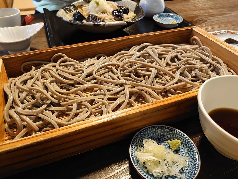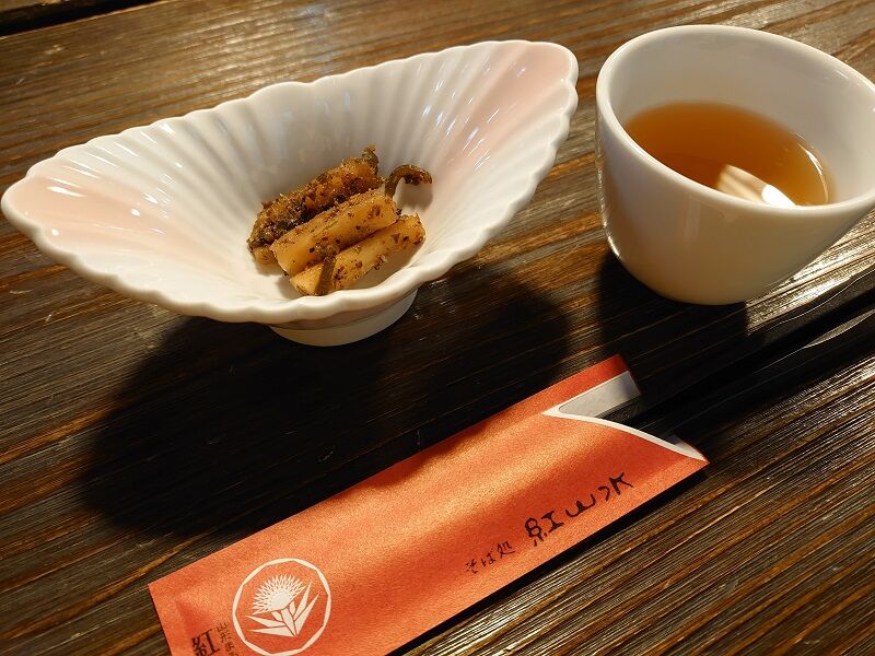 大根を鰹風味に漬けたものと、お蕎麦屋さんならではの蕎麦茶を出していただけるので、それを味わいながら主役の登場に期待を膨らませます(*´艸`*)