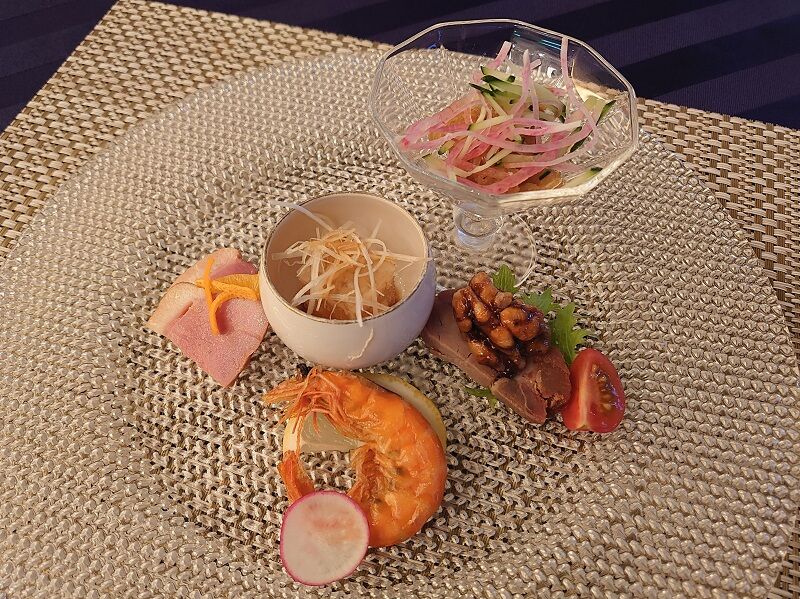 最初に出てきたお料理は、前菜5種盛り合わせ。