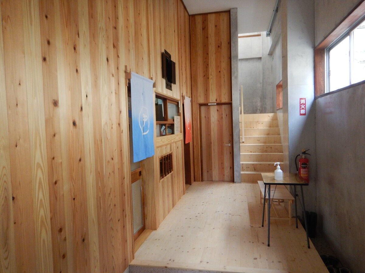 玄関を入るとすぐに受け付けと、男女の浴室入口があります。