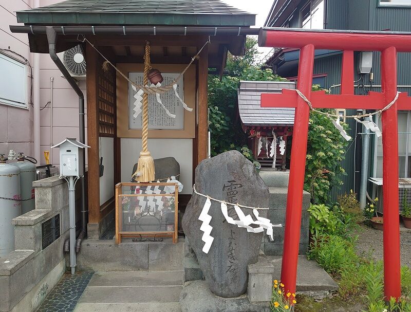 その「夜泣き石」の本体はちゃんと屋根の下に安置されている方の石で、前にある「よなき石」って彫ってある方の石は昭和の時代になってから新たに設けられたもの。