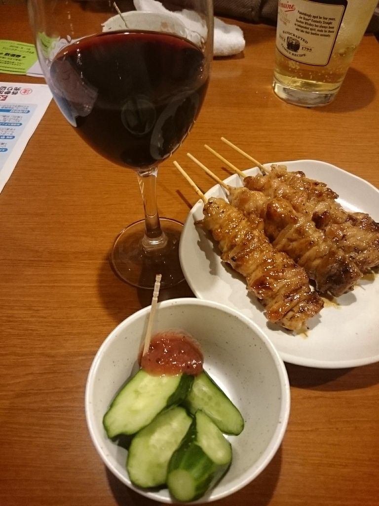 ・彩鳥(指定店) 焼鳥、モロキュー、赤ワイン