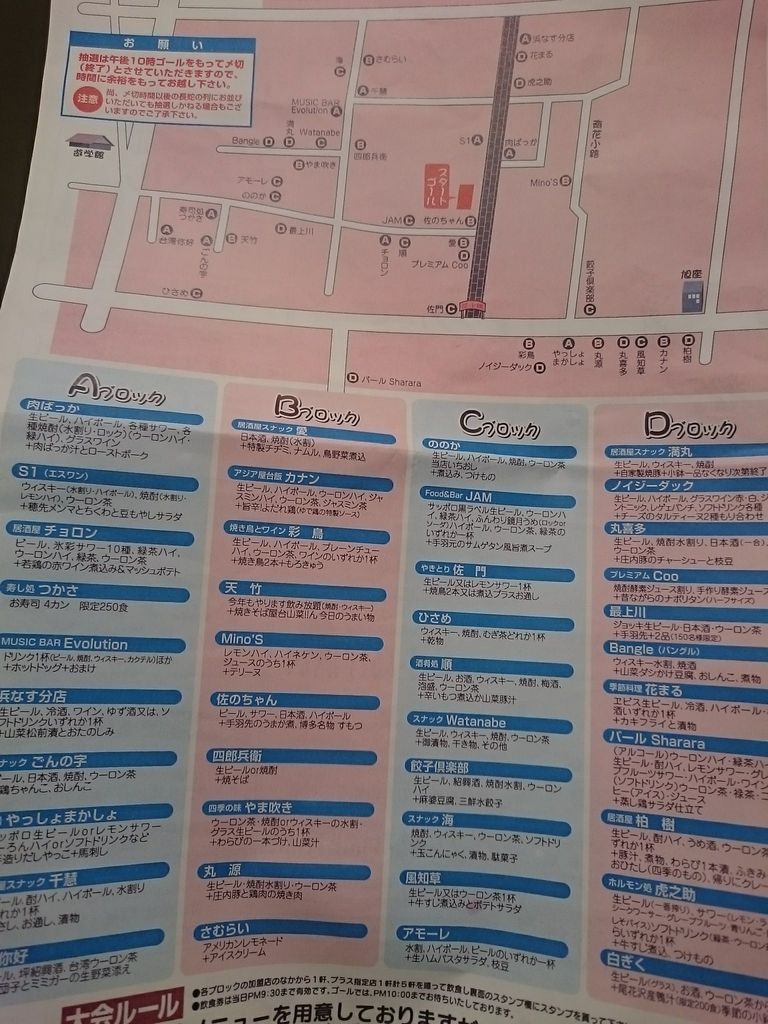 受付を済ませると参加店とメニュー、お店の場所が書かれた用紙を受け取ります。
