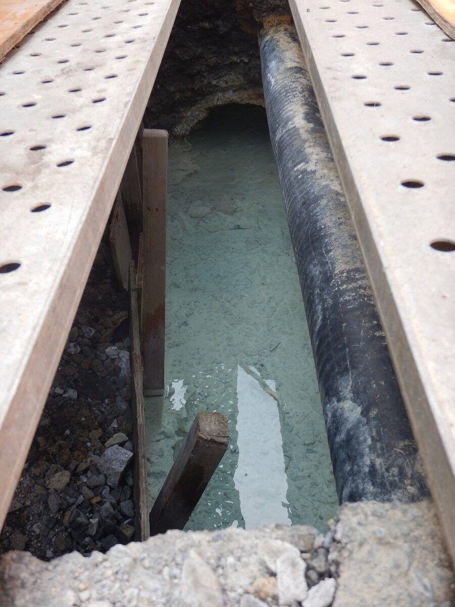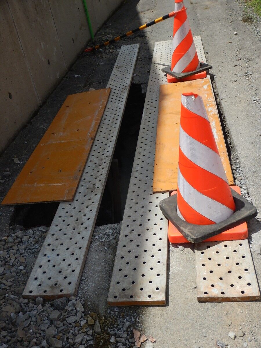 どうやら歩道の下を通っていた土管が劣化して潰れてしまったようです。