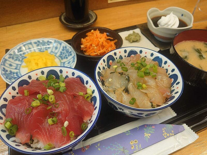 まぐろ丼(小)ともうひとつの小丼がセットになった、店名を冠したおすすめメニュー♪