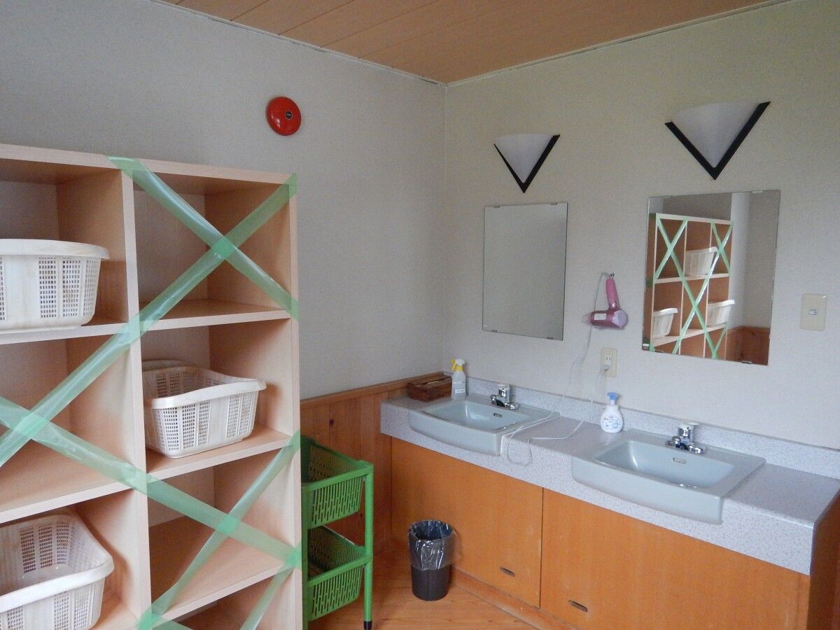 密防止のため脱衣棚は一部使用不可。