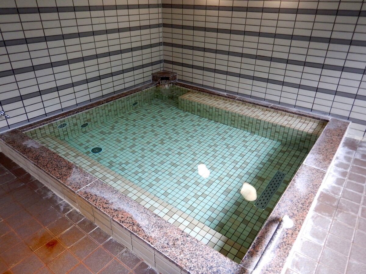 床には温泉の成分か、白っぽいものが点々と見えました。