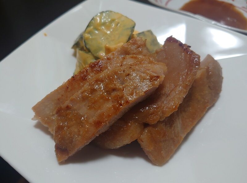 そして、こちらがついに最後の料理。豚肉とポテトサラダ。ポテトサラダ?