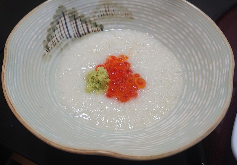 はい、とろろです。山芋にイクラとわさびというシンプルな料理だけど、これにちょっとだけ醤油を垂らして食べると凄く美味しいんだよね~。