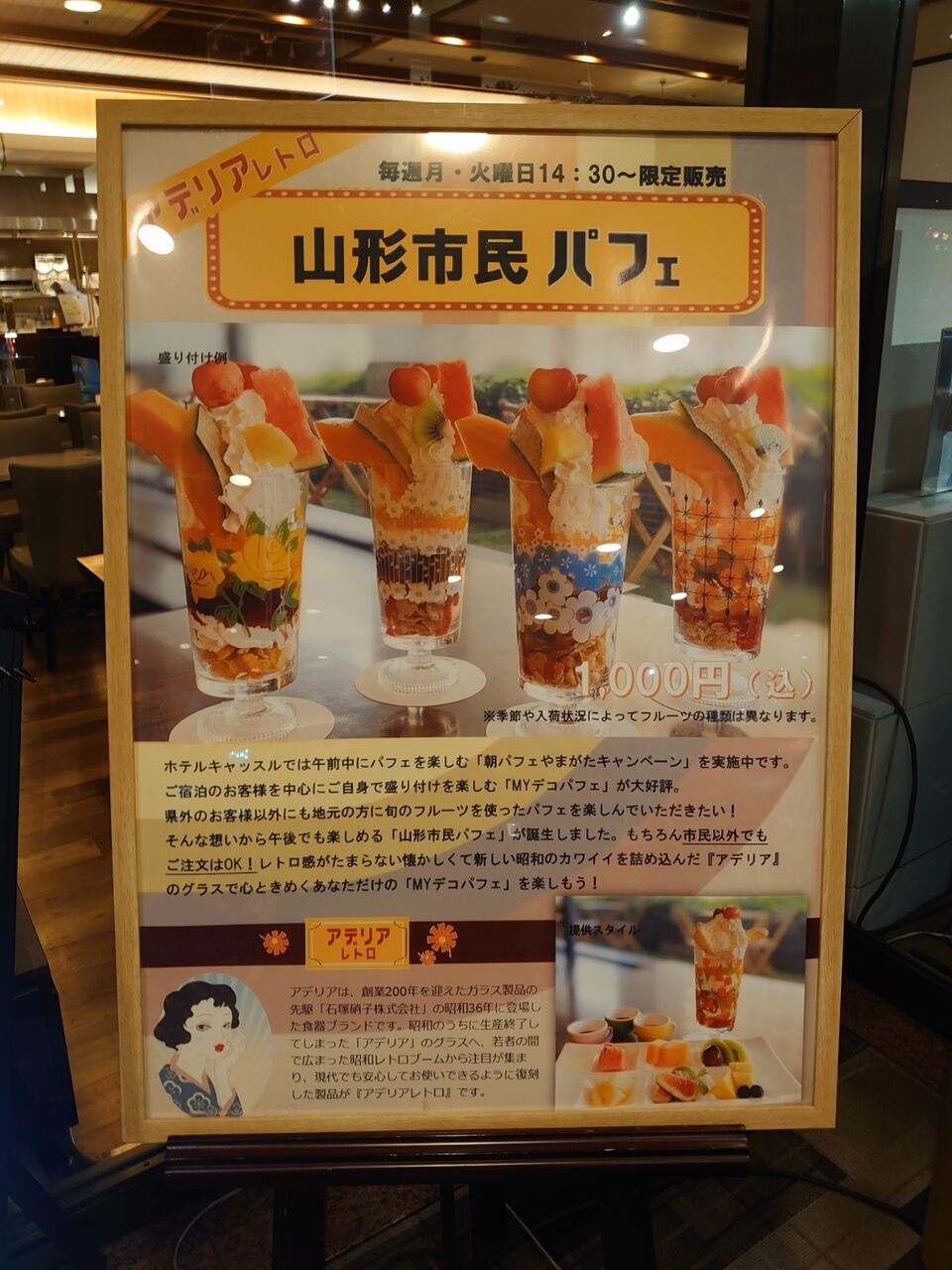 今日はお仕事絡みの懇親会。久しぶりにホテルキャッスルさんにお邪魔したんですが、飲み会の内容よりも、パフェ好きにとってはこちらのほうが気になって仕方ない!朝パフェ、デコパフェがとっても気になります!