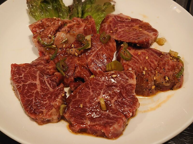 ハラミカルビ。ハラミは赤身肉ってイメージなんでよく頼むんだけど、ハラミカルビっていうのは初めて見た気がする。よくあるメニューなのかな?