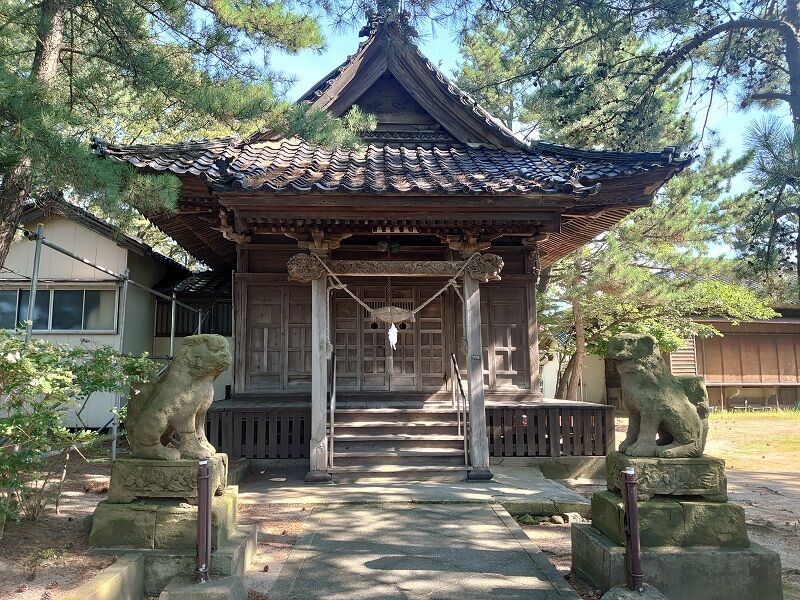 琴平神社。かなり歴史がありそうな神社で、前の狛犬さんも一部風化して欠落していたほど。