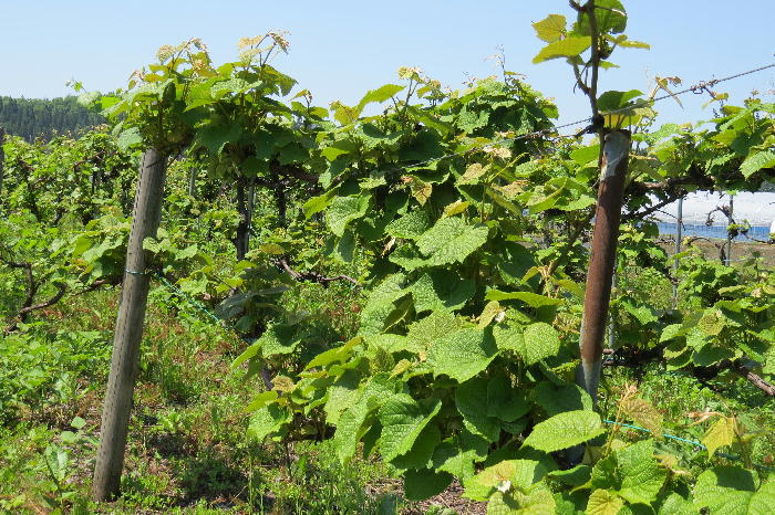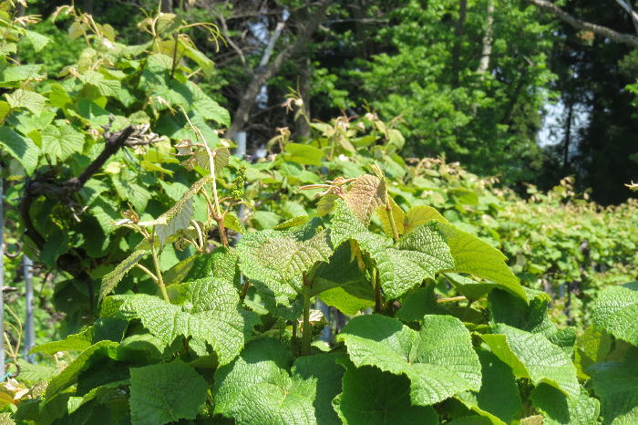 われらが横山農園の<山ぶどう>も、ご覧のとおりにグングン葉が広がっています。
