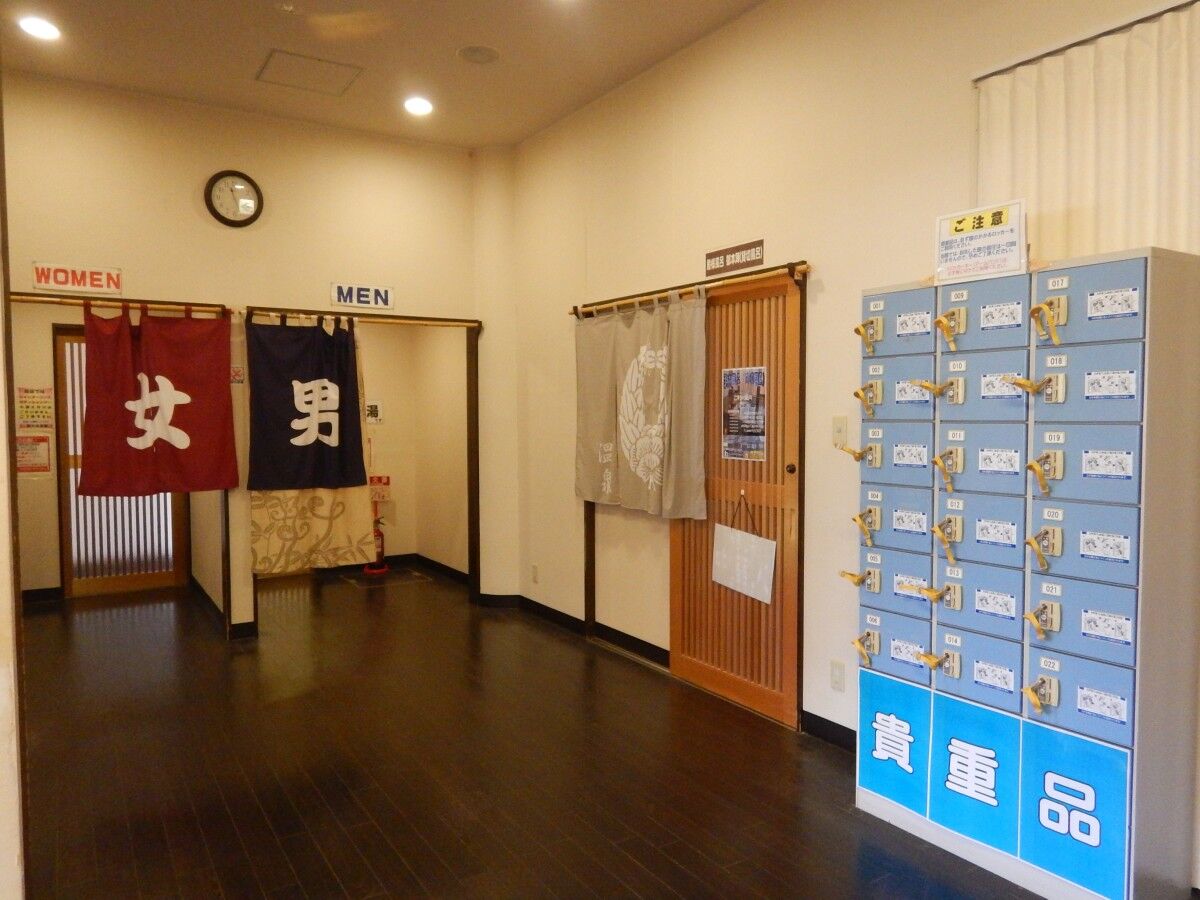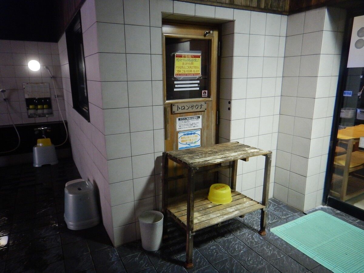 入口にあるサウナは感染防止のため残念ながら休止中。
