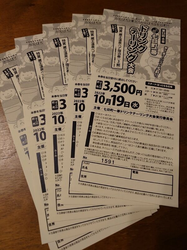 先週末、七日町一帯ドリンクテーリングの前売りチケットをお願いしていたお店に受け取りに行ってきました♪