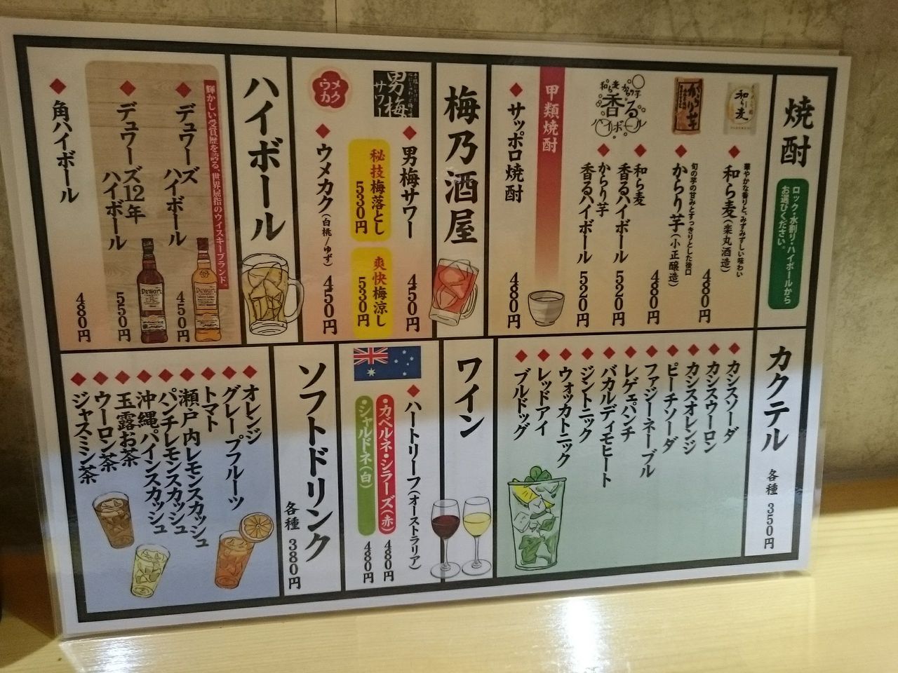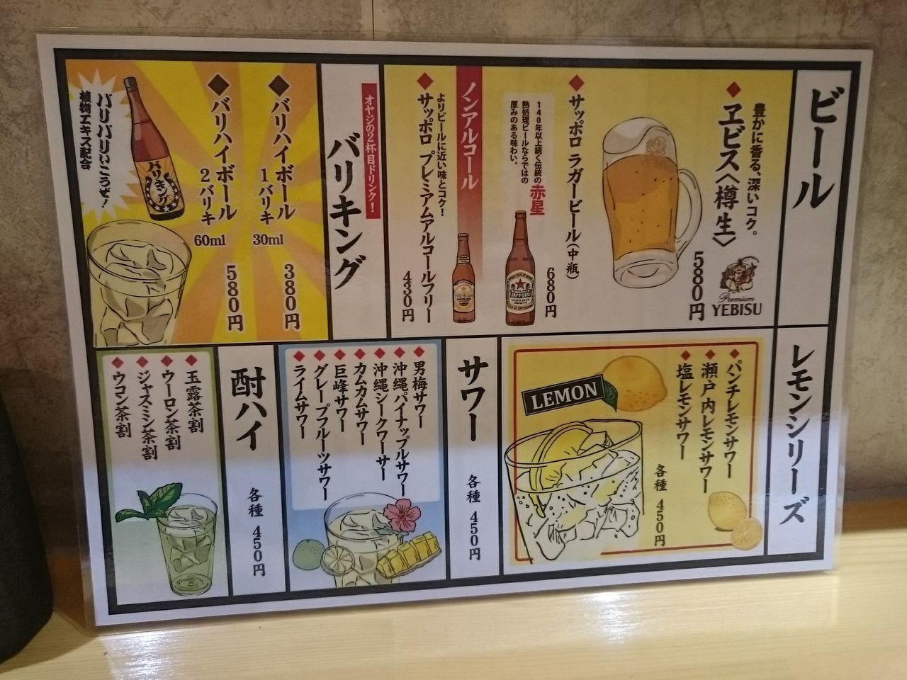 ドリンクの方は一通りのジャンルがそろっている印象です。