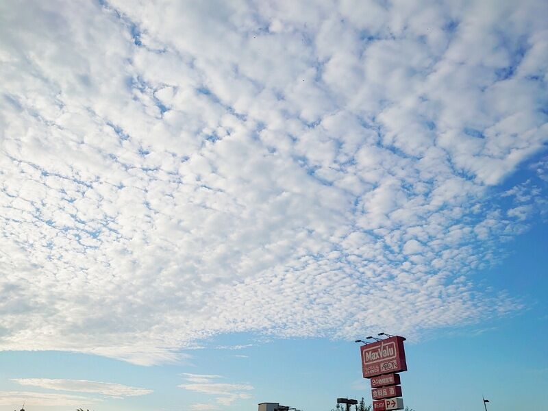 最近、SNSでもずいぶん載せてる方が多いうろこ雲。これはあんまりキレイに撮れてないんだけど、そもそもうろこ雲なのか、羊雲なのか?