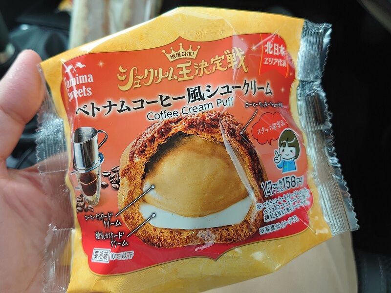 しかしこのシュークリーム、「シュークリーム王決定戦」ってタイトルが書いてあるけど、我らが東北(北日本)エリアから名乗りを上げたのが、このベトナムコーヒー風シュークリーム。