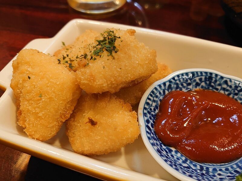 自宅でもワインを飲むときにはカマンベールチーズを買ってきて飲む、なんてことはよくあるけど、こうしてお店で出してもらうチーズのフライはまたこうした味の違いも見られるからいいよね~。