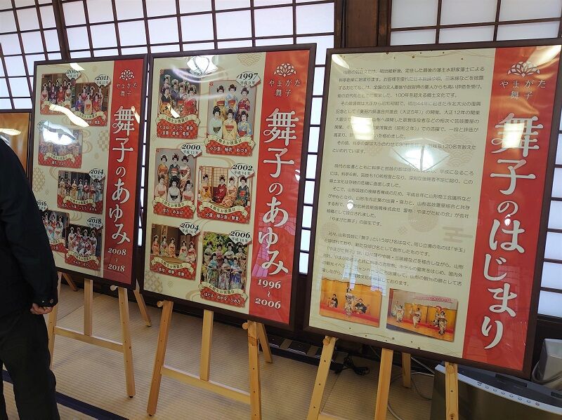 2階の大広間では、舞子さんに関する動画を上映中。
