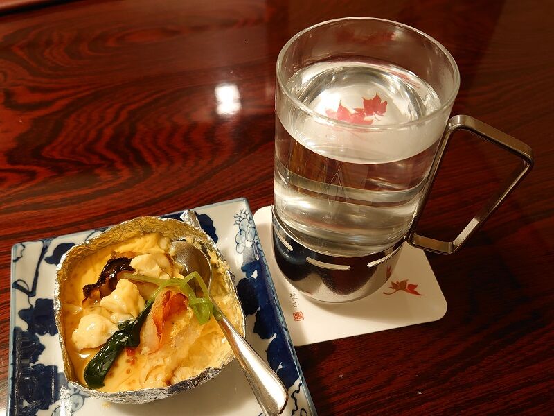 ビールに合わせてるだけじゃ芸がないので、今度は芋焼酎のお湯割りにしてもらいました♪