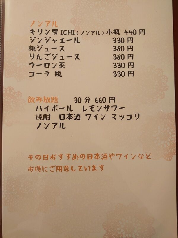 そしてこちらはドリンクメニュー。