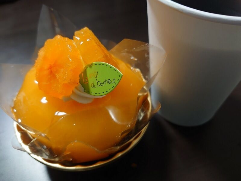 ショーケースには美味しそうなケーキがたくさん並んでたけど、その中でも最も僕たちの目を引いたのが、こちらの柿のタルト。