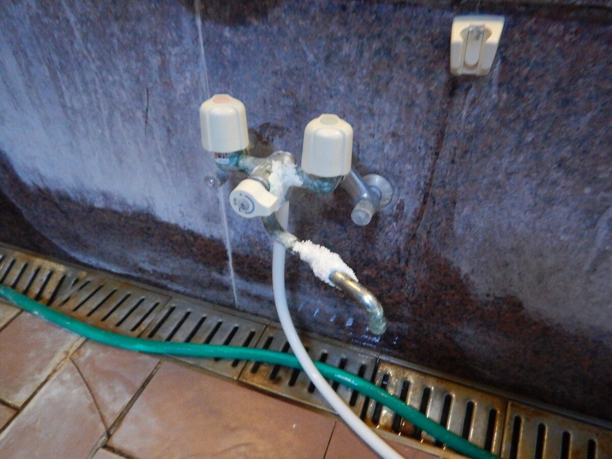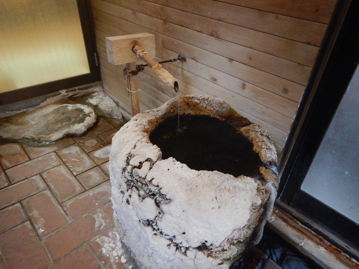 どうやらお湯は源泉を利用しているようで、たっぷりと析出物が付着しています。