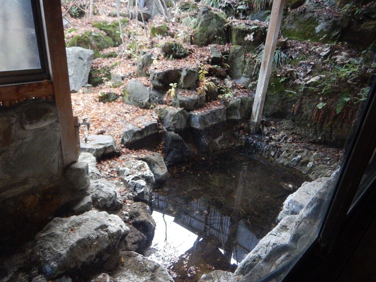 小さいながらも野性味ある湯舟のようで、利用できないのが残念です。
