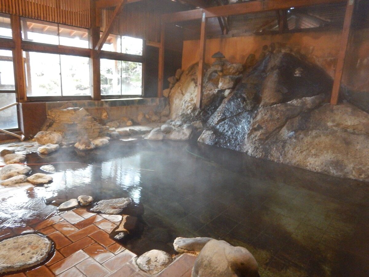 広い湯舟に新鮮なお湯が掛け流され、宿の自家源泉を十分に楽しめます。