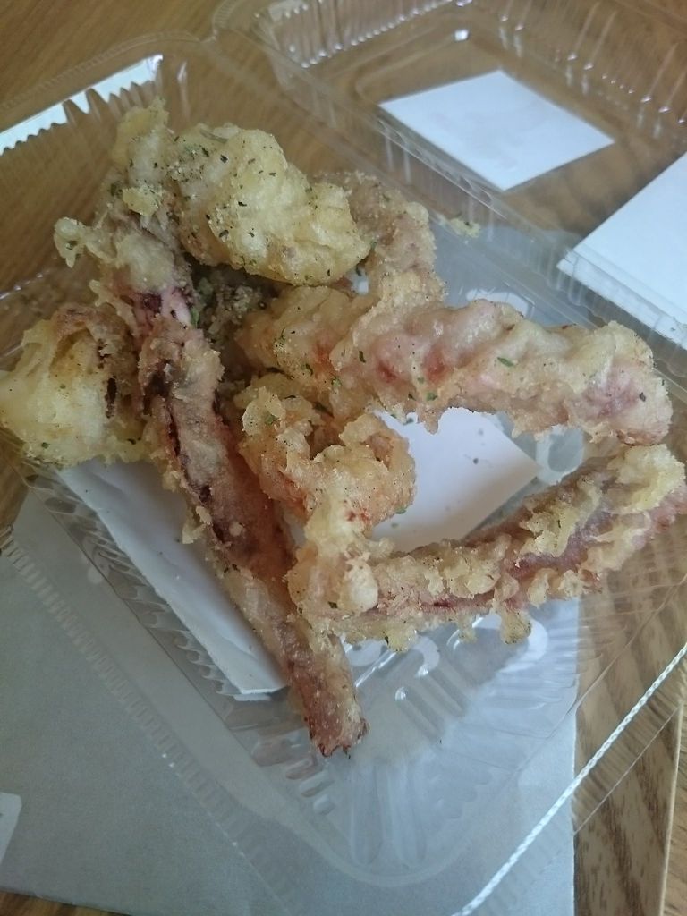 もう一つ持ち帰りでげそ天の小を購入。塩レモン味にしてもらい400円でした。