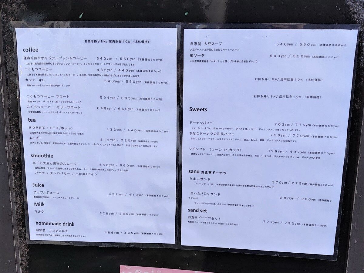 お店の前に掲示してあったメニューを見ると、「店内飲食」の文字もある。