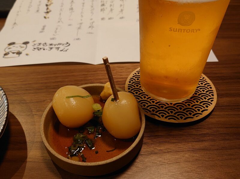 お通しは「ヤマコン食品さんの玉こんにゃくです♪」とのご紹介。