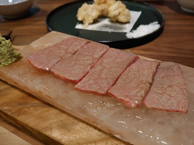 これが出てきた瞬間も鮮やかなお肉の色合いにテンション上がるし、バーナーで女将さんが炙ってくれるのも凄く楽しい♪