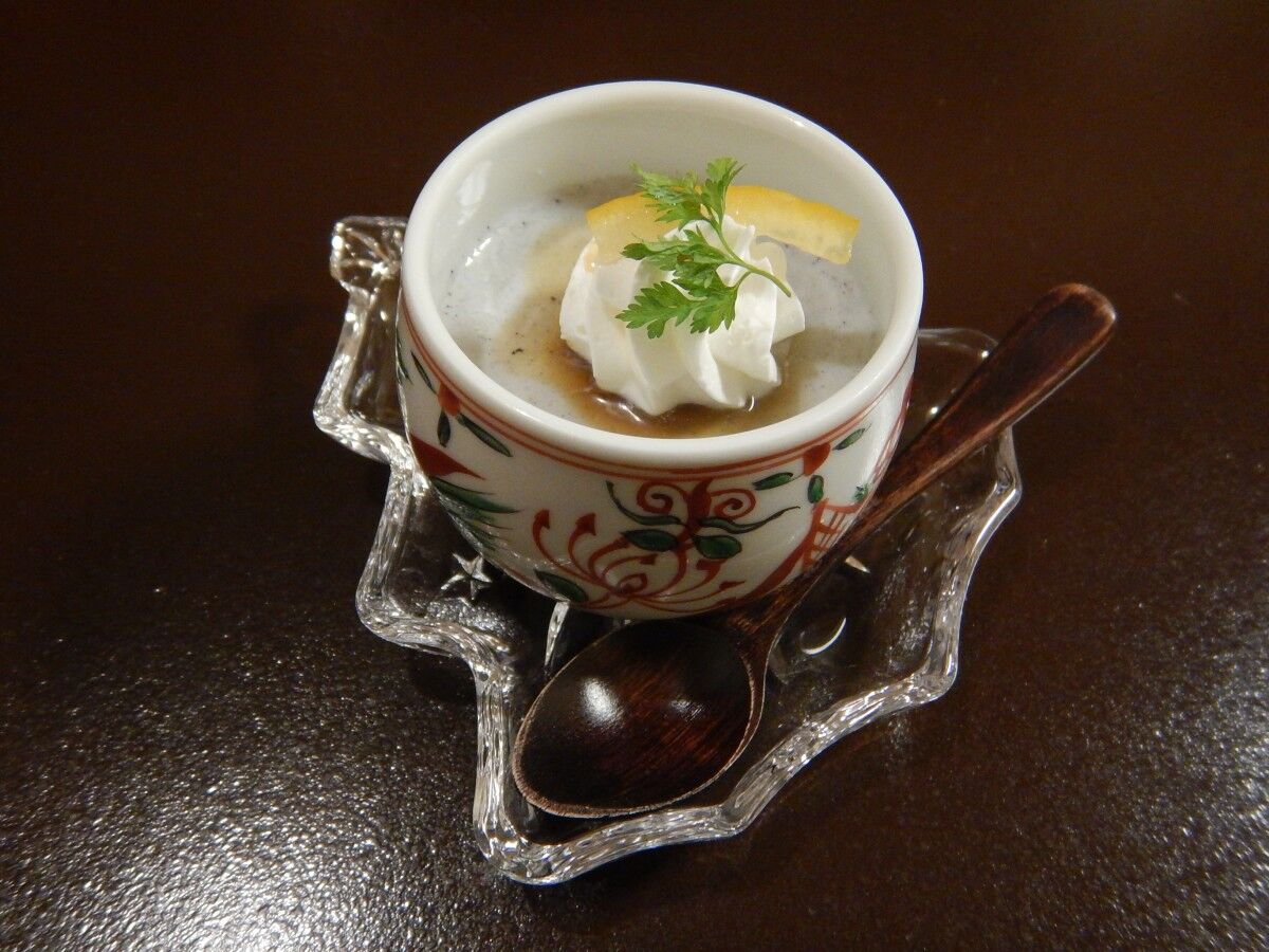食後にはゴマプリン付きです。
