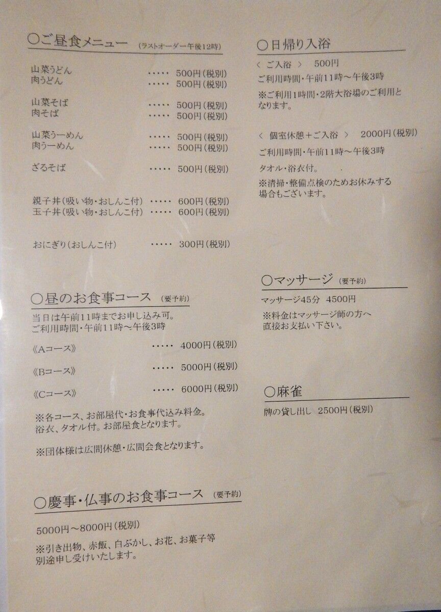 素泊まりや朝食のみのプランもありますが、温泉街に飲食店はほぼ無いので、持ち込みか別の場所で食事する必要があります。