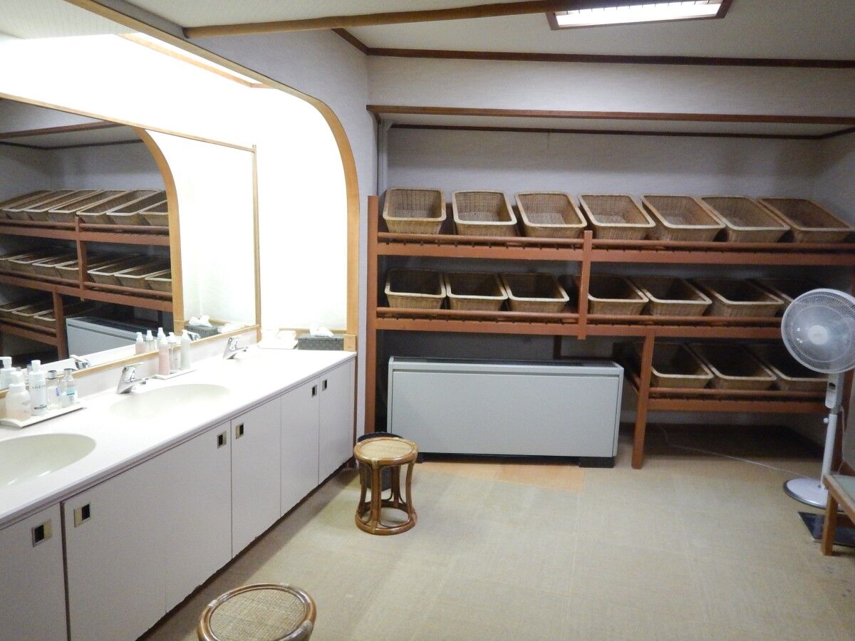 脱衣所は棚と洗面台の位置が違うくらいで黄金風呂と変わらず。